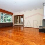 L’unità, caratterizzata da doppi ingressi, si compone di ampio salone di rappresentanza, cucina, cinque grandi camere, disimpegno e doppi servizi. L’immobile gode di accesso diretto al giardino e dispone di box auto.